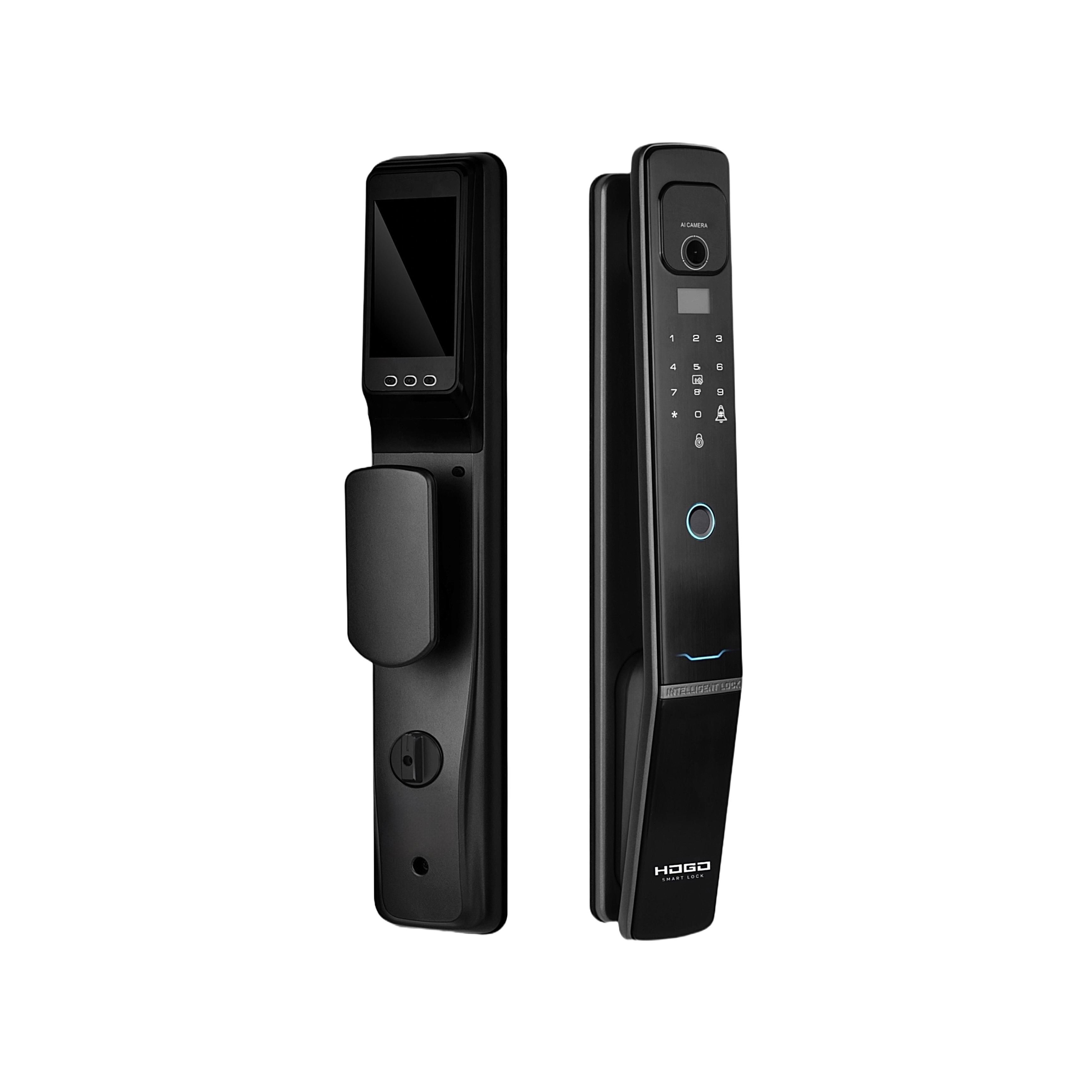 Замок врезной электронный Hogo V05 с функцией видеодомофона подходит практически для всех видов дверей, как для входных, так и для межкомнатных правого и левого открывания. Корпус замка выполнен из особо прочного пластика, сам замок выполнена из стали. Может комплектоваться различными врезными замками с межосевым расстоянием 85 мм. Способы открытия: отпечаток пальца, сканер лица (Face ID), цифровой пароль, IC карта, механический ключ, приложение через смартфон. Имеет современный минималистичный дизайн и самые продвинутые технологии.