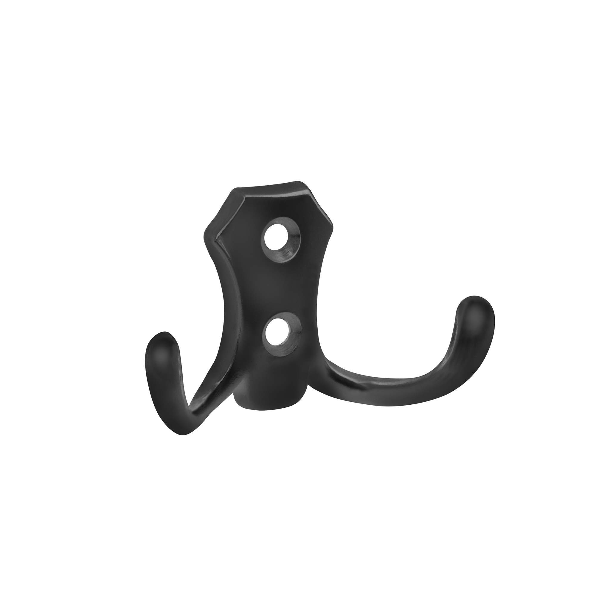 Крючок двухрожковый настенный MB-K-002 бренда AJAX предназначен для подвешивания одежды и предметов обихода. Подходит для всех типов стен и любого интерьера. Крепится к несущей деревянной поверхности при помощи саморезов, для монтажа на иные поверхности необходимо использовать дюбели. Рекомендованная предельная нагрузка на крючок MB-K-002 до 10 килограммов.Выполнен из цинкового сплава (ZAMAK) с гальваническим покрытием. Допускается эксплуатация во влажной среде. Упаковка: цветной пакет. Цвет: черный. Комплектация: крючок - 1 шт,  саморезы - 2 шт., дюбели в комплект не входят.