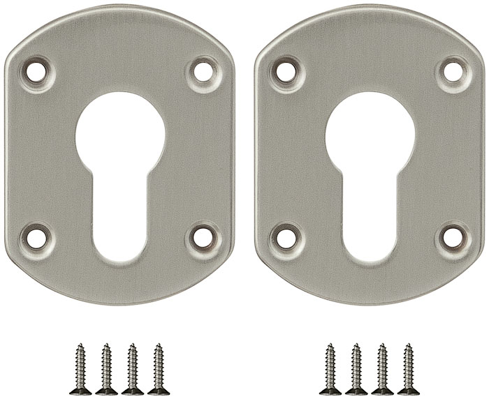Комплект декоративных накладок Fuaro ESC031 под цилиндровый механизм. Комплект состоит из двух накладок. Накладки предназначены для установки на цилиндровый механизм для декорирования замочной скважины. Материал изготовления: сталь. Тип крепления накладок: сквозной. Цвет: матовый никель. Саморезы в цвет накладок.