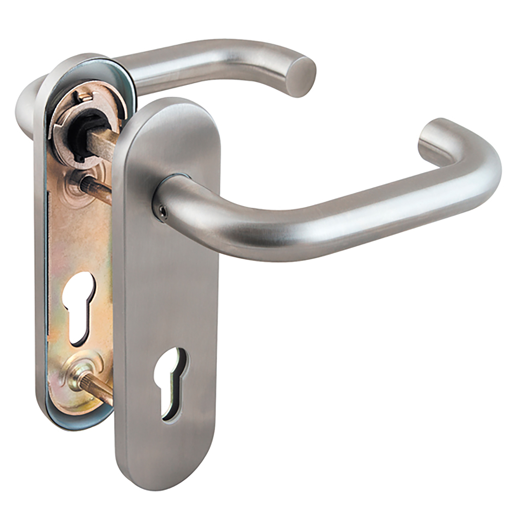 Ручка дверная DH-0433 SS предназначена для комплектации всех противопожарных замков с межосевым расстоянием 72 мм. Широкое применение нашла в подъездах, МОП, подсобных и вспомогательных помещениях. Может устанавливаться на улице. Пружина препятствует провисанию ручки, облегчает работу привода замка. Материал ручки: нержавеющая сталь. Без подпиливания квадрата устанавливается на двери - от 55 до 95 мм. С подпиливанием - от 35 мм. Материал основания: оцинкованная сталь.Соответствует 4 классу по ГОСТ 538-2014