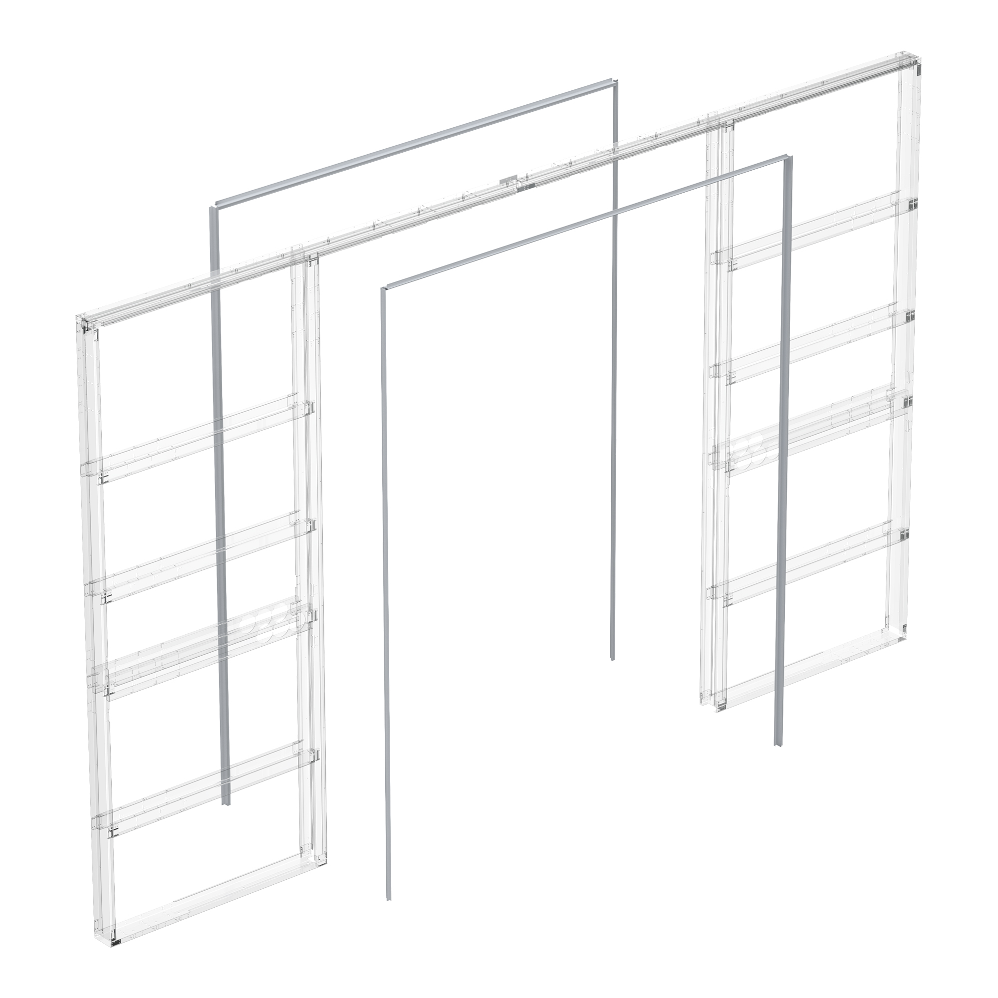 Специальный профиль обрамления устанавливается в пенал для двухстворчатой двери  (без наличников). Проем обшивается гипсокартоном для последующей отделки чистовыми материалами (обоями, краской или декоративной штукатуркой).Максимальный размер каждой двери 900х2900 мм. В комплект входит: Профиль обрамления U-1 - 6 шт.,Декоративный верхний профиль 20х10 мм - 2 шт., Щеточный уплотнитель- 16 м., Цвет алюминий.