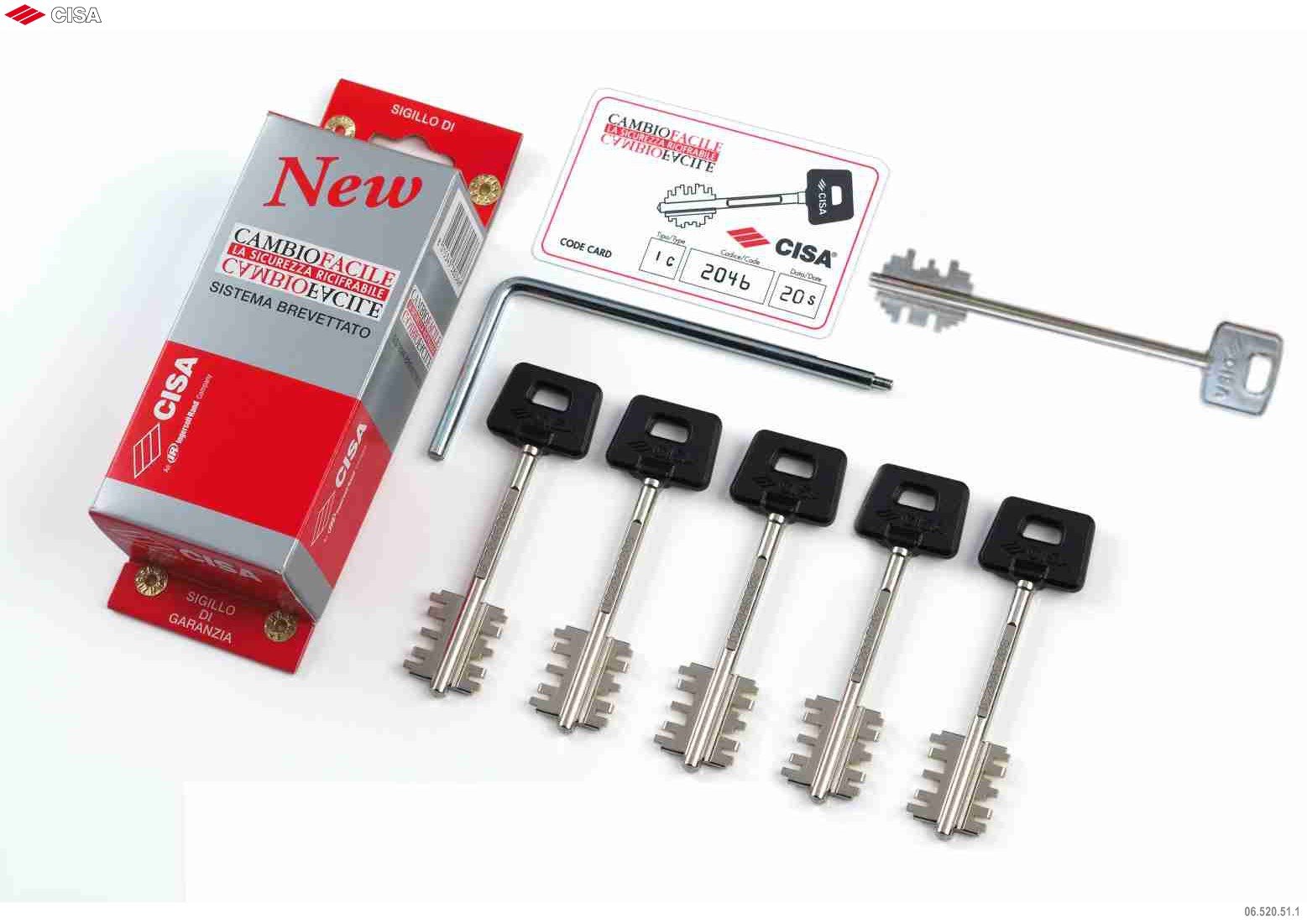 Комплект перекодировачных ключей "New Cambio" 06.520.51.1  для замков CISA серии NEW CAMBIO FACILE позволяет сменить код замка самомтоятельно не снимая его и не заменяя детали. Процесс по перекодированию займет не больше минуты и его можно повторять неограниченное количество раз.