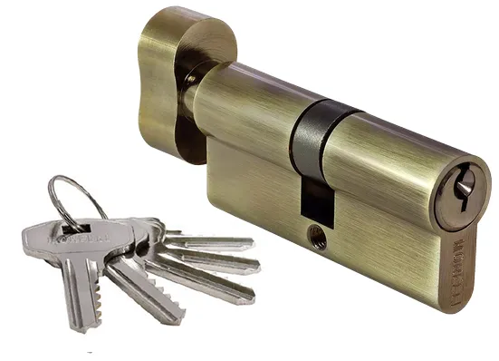 Ключевой цилиндрс заверткойдля двери вставляется в замок или защелку для закрытия ключом с одной стороны помещения и поворота кноба с другой.