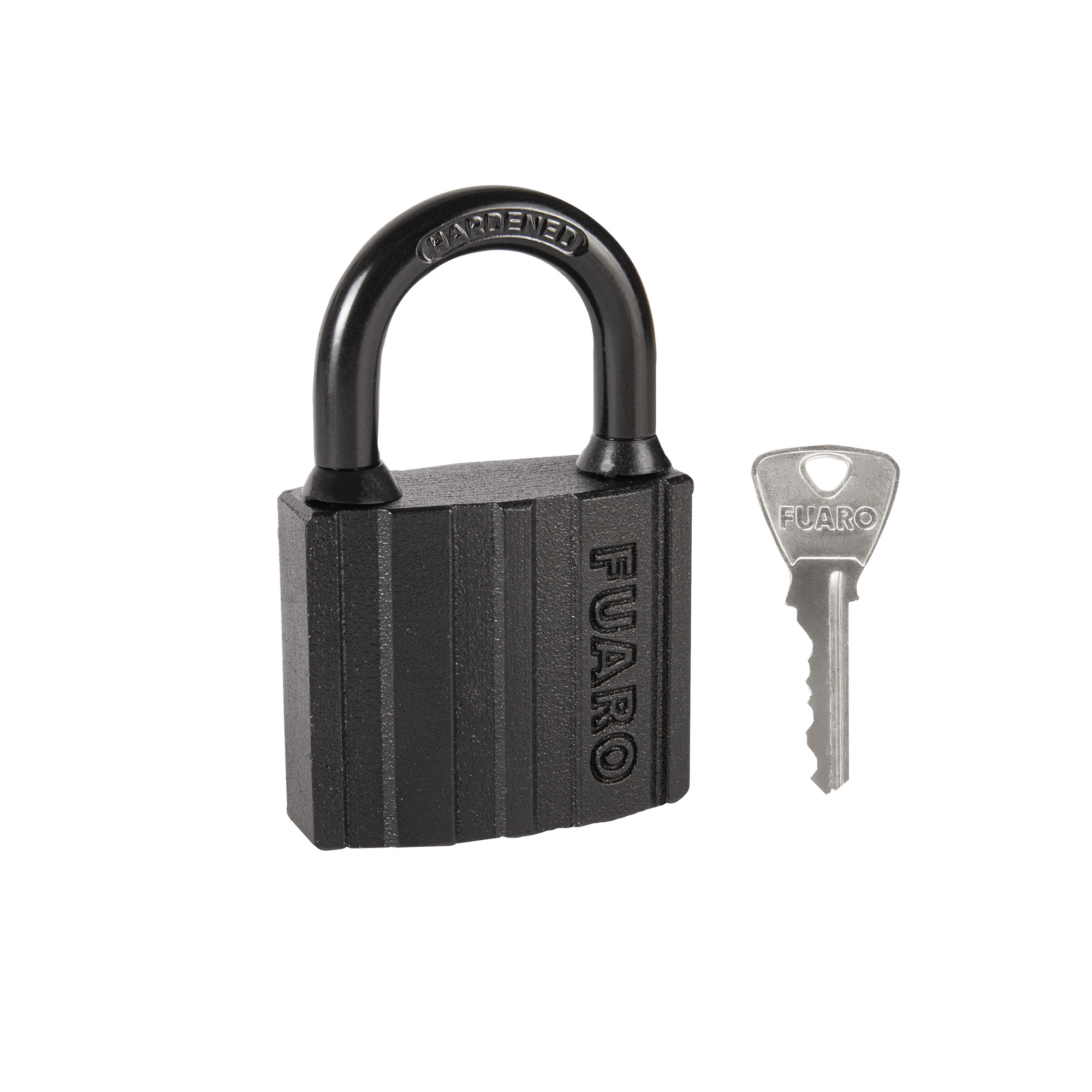 Навесной замок Fuaro PL-UNI-04-38 предназначен для запирания внутренних и уличных дверей, ворот и других объектов, оснащенных проушинами. Автоматическое запирание без ключа. Чугунный корпус. Латунный цилиндр для надёжной и продолжительной работы. Закаленная дужка для защиты от спиливания. Ресурс работы более 10 лет. В комплектацию входят 3 английских ключа. Габаритные размеры навесного замка указаны на чертеже. Упаковка: блистер.3 класс безопасности.