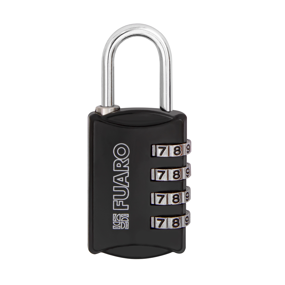 Навесной замок перекодируемый Fuaro PLZ-28-04B с 4-х значным цифровым кодом предназначен для чемоданов, сумок, шкафчиков. Количество перекодировок не ограничено. Материал корпуса - замак.Упаковка: информативный блистер с инструкцией пользователя для размещения в торговых точках и магазинах формата DIY.