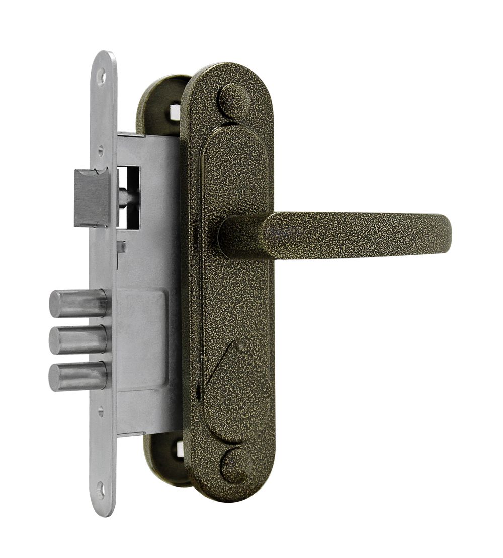 Замок врезной сувальдный ЗВ9 предназначен для установки в деревянные и стальные двери толщиной до 50мм, правого и левого открывании. Засов из трех стальных цилиндрических ригелей диаметром 12мм. Ручки на планке покрыты полимерной краской, цвет: бронза. В фалевые ручки добавлены пружины и фиксаторы, что исключает «провисание» ручек и обеспечивает четкую фиксацию их положения.