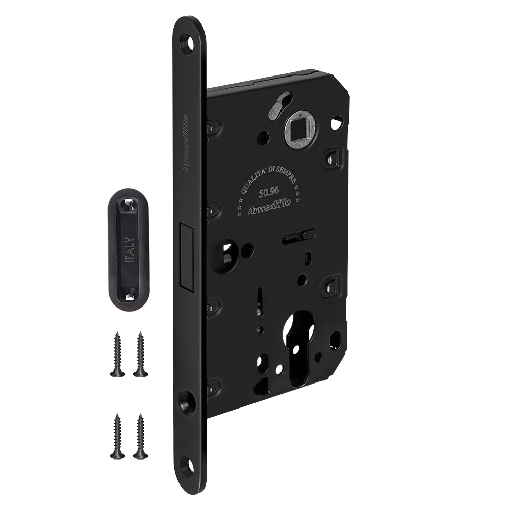 Магнитные межкомнатные замки Armadillo GRAVITY - симбиоз итальянского дизайна и современных технологий. Абсолютная бесшумность работы достигается за счет магнитного механизма, срабатывающего только при закрывании. В остальное время защелка утоплена в полотно. Такая конструкция делает торец более эстетичным и продлевает срок службы самого изделия. Уникальная форма ответной планки со скошенными краями гарантирует идеальное сцепление и плавное закрывание. Доступны два размера планки: 190 и 196 мм. Подходят для установки на деревянные межкомнатные и сантехнические двери левого и правого открывания с толщиной полотна от 35 мм. Совместимы с основными типами цилиндровых механизмов.