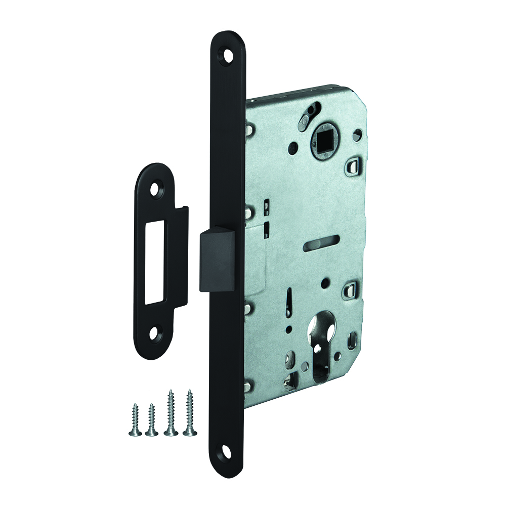 Корпус замка с пластиковым механизмом AJAX LP85-50 предназначена для установки в деревянные межкомнатные двери. Легкая смена направления язычка защелки, подходит для дверей левого и правого открывания. Корпус выполнен из стали.Размер бэксета - 50 мм. Размер межосевого расстояния - 85 мм. Цвет: черный. В комплектацию входят: ответная планка и крепежная фурнитура в цвет изделия.