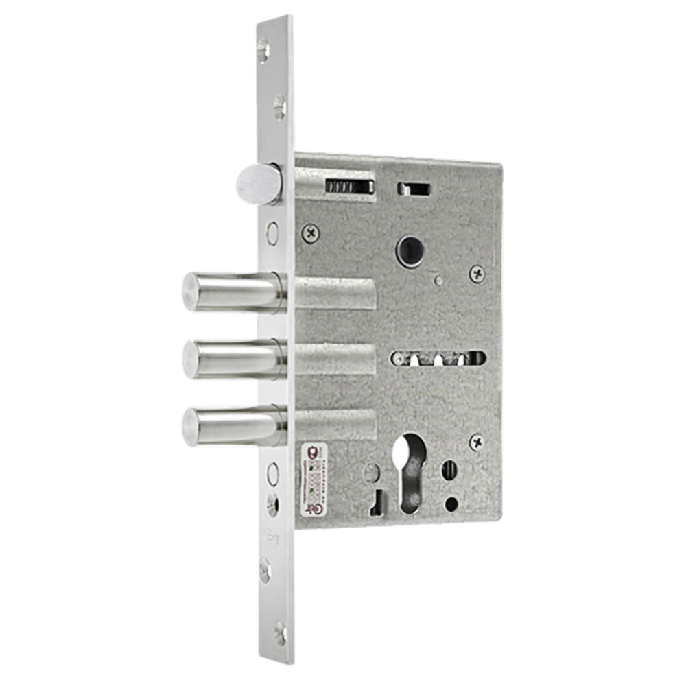 Корпус замка ЗВ-7РМП-004-Хп используется для монтажа на противопожарные двери. Сертифицирован по четвертому классу. Замки данного типа имеют три ригеля и защелку. Вылет засова при трёх оборотах ключа составляет 36 мм. Все элемента замка сделаны из металла. . Защелка работает от ручки. Возможность установки броненакладки.