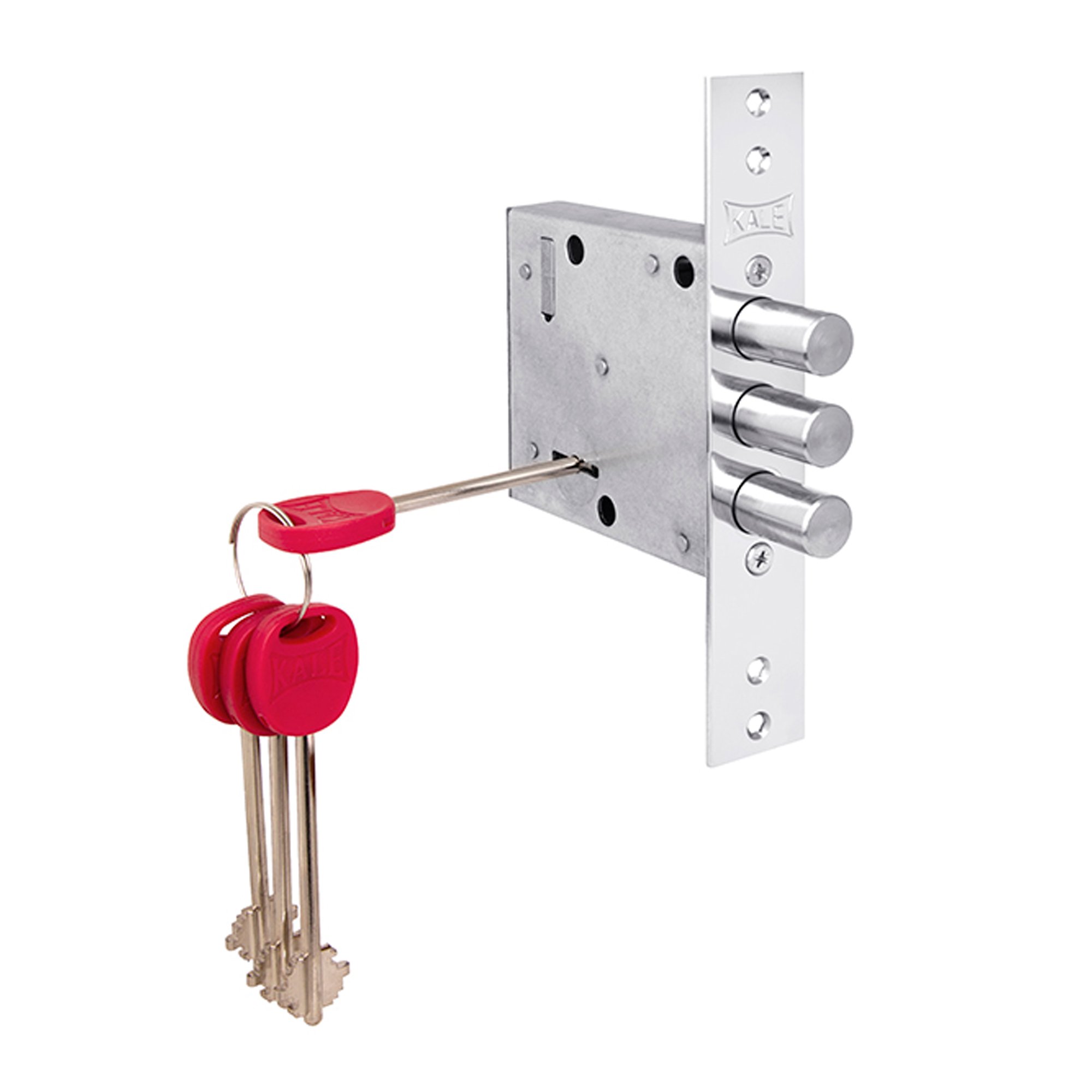 Kale 447/L Замок врезной сувальдный для металлических дверей, универсальный, дополнительный. Съёмная лицевая планка для установки врезным или вкладным способом. Легкие замки востребованного отечественного типо-размера с малым вылетом ригелей были специально разработанны компаней Kale Kilit для эконом сегмента и имеют приемлимую цену. В комплекте идет 5 ключей.                                                                              Kale Kilit - компания зарекомендовавшая себя на российском рынке как производитель продукции, оптимальной по соотношению цены и качества