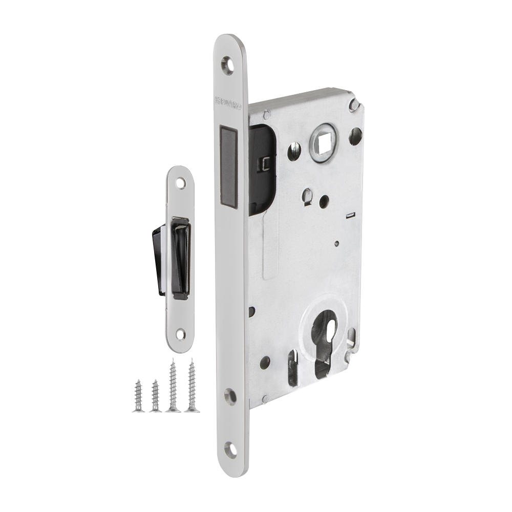 Бесшумный магнитный корпус замка Fuaro 5300-M-C изготовлен в соответствии с требованиями ГОСТ 5089-2011.Предназначен для установки в деревянные межкомнатные и сантехнические двери с комплектованием цилиндром, подходит для дверей левого и правого открывания. Корпус выполнен из стали с надежным гальваническим покрытием. Магнитный механизм обеспечивает бесшумность работы замка. Защелка 5300-M-C c  усиленным блоком пружин имеет высший 4 класс надежности (250 000 циклов открывания/закрывания). Отверстия под стяжные винты находятся на расстоянии 38 мм. Возможна установка дверных ручек на стяжные винты для более прочного крепления. В комплектацию входят: ответная планка с магнитной вставкой и крепежная фурнитура в цвет изделия.