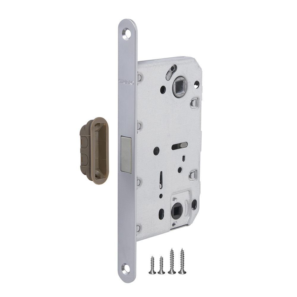 Бесшумная магнитная защелка Fuaro M96WC серии MAGNET изготовлена в соответствии с требованиями ГОСТ 5089-2011. Предназначена для установки в межкомнатные и сантехнические двери. Корпус выполнен из стали с надежным гальваническим покрытием. Магнитный механизм обеспечивает бесшумность работы защелки. Защелка M96WC с усиленным блоком пружин имеет высший 4 класс надежности (250 000 циклов открывания/закрывания). Отверстия под стяжные винты находятся на расстоянии 38 мм. Размер бэксета - 50 мм. Размер межосевого расстояния - 96 мм. Возможна установка дверных ручек на стяжные винты для более прочного крепления. Цвет : сатинированный хром. В комплектацию входят: ответная планка и крепежная фурнитура в цвет изделия.