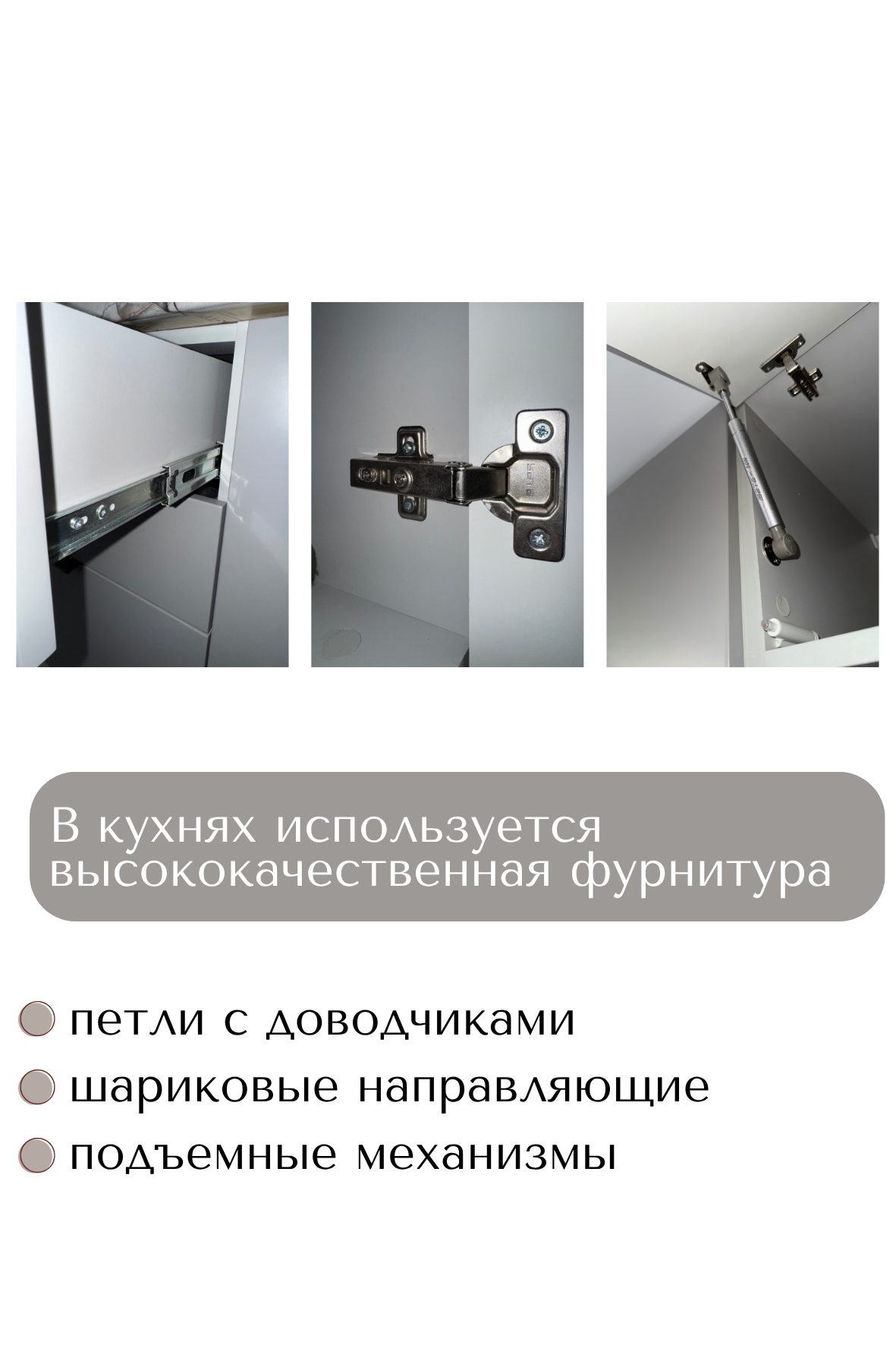 * Вся фурнитура с доводчиками, шариковые направляющие.