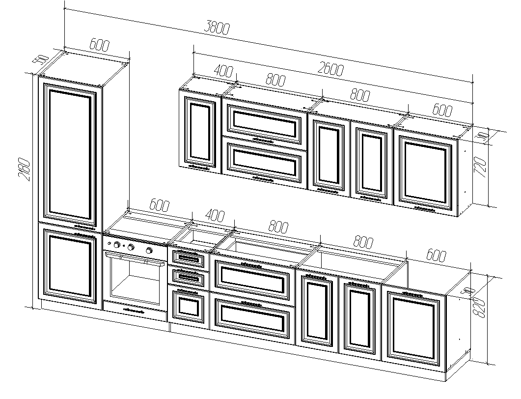 * На чертеже доступны все размеры кухни.