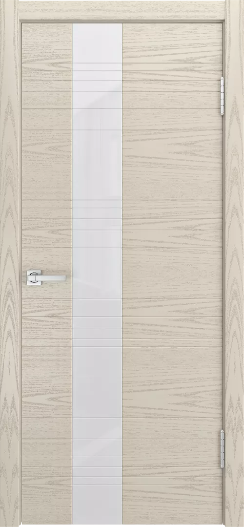 Дверь ID-HL ДО имеет каркасно-щитовую конструкцию с фрезерованной поверхностью полотна. Модель остеклена лакобелем и покрыта натуральным шпоном ясеня или дуба на выбор.