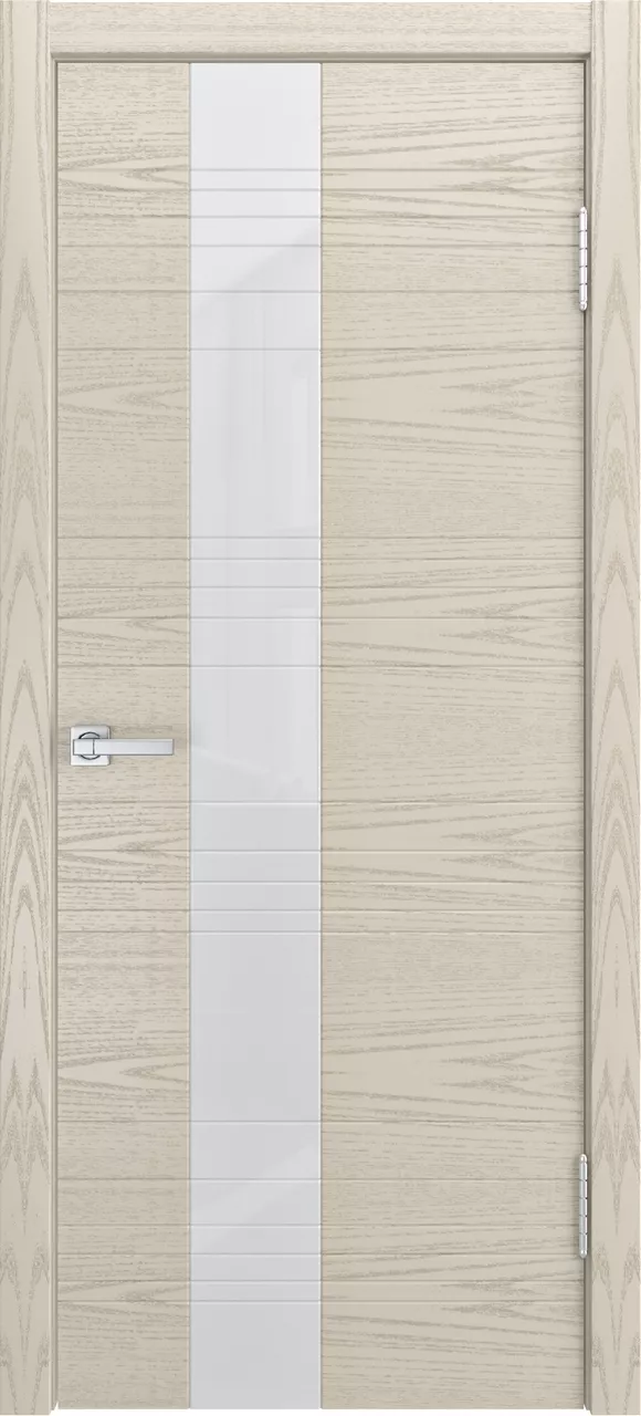 Дверь ID-HL ДО имеет каркасно-щитовую конструкцию с фрезерованной поверхностью полотна. Модель остеклена лакобелем и покрыта натуральным шпоном ясеня или дуба на выбор.