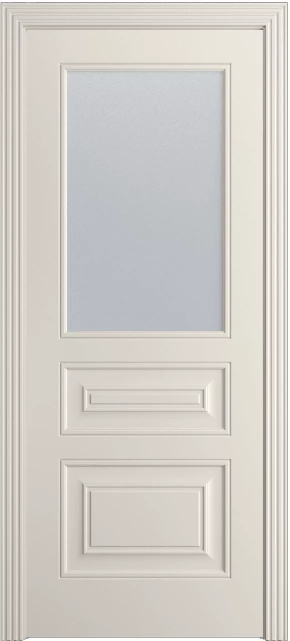 Дверь Версаль-2Ф ДО имеет каркасно-щитовую конструкцию с фрезерованной поверхностью полотна, имитирующей филенки. Модель остеклена светлым или темным сатинатом на выбор и покрыта эмалью.