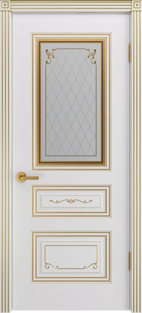 Дверь Трио Грейс В2 ДО имеет каркасно-щитовую конструкцию с фрезерованной поверхностью полотна, имитирующей филенки. Также имеется фигурная фрезеровка на «филенках». Остекление на выбор сатинированное или с фотопечатью. Модель покрыта эмалью.
