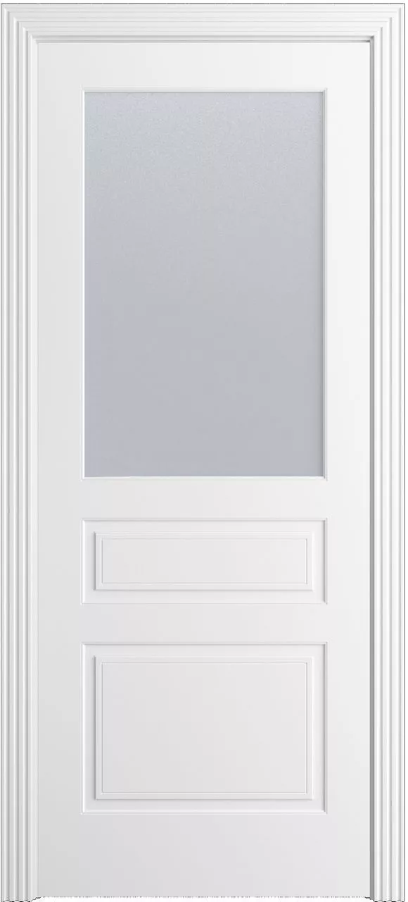 Дверь Бруклин-3 ДО имеет каркасно-щитовую конструкцию с фрезерованной поверхностью полотна, имитирующей филенки. Модель остеклена светлым или темным сатинатом на выбор и покрыта эмалью.