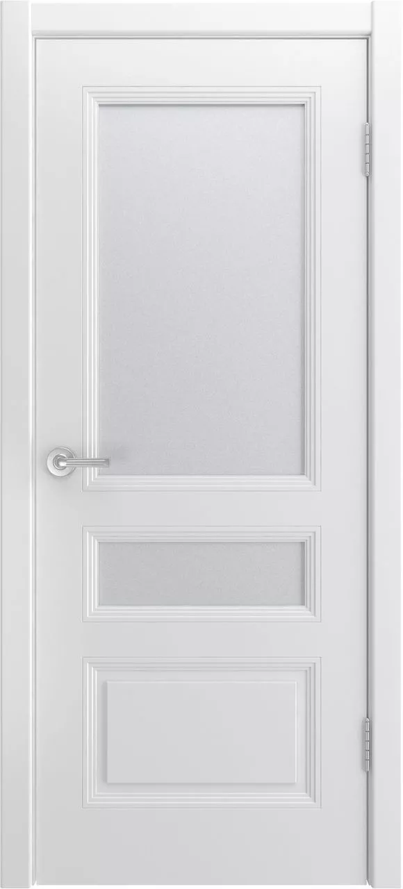 Дверь Белини-555 ДО имеет каркасно-щитовую конструкцию с фрезерованной поверхностью полотна. Остекление на выбор сатинированное или с фотопечатью. Модель покрыта эмалью.