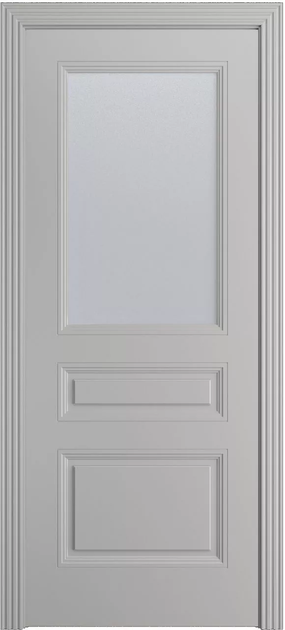 Дверь Манхэттен-3 ДО имеет каркасно-щитовую конструкцию с фрезерованной поверхностью полотна, имитирующей филенки. Модель остеклена светлым или темным сатинатом на выбор и покрыта эмалью.