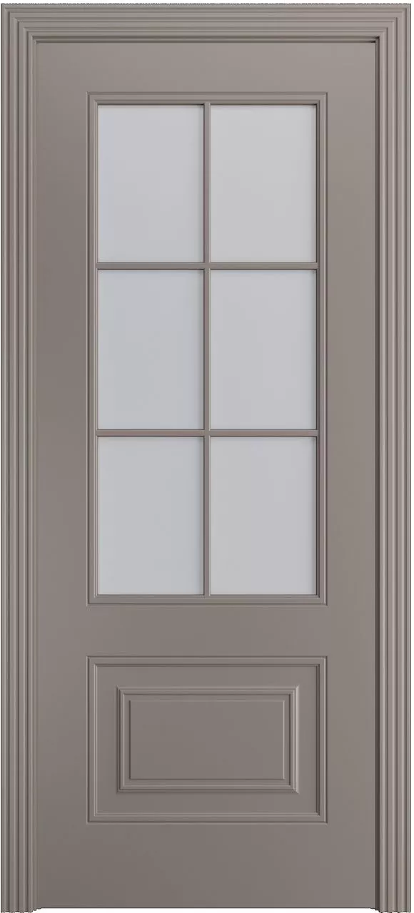 Дверь Версаль-Ф Loft (6) ДО имеет каркасно-щитовую конструкцию с фрезерованной поверхностью полотна и английской решеткой на 6 квадратов. Модель остеклена светлым или темным сатинатом на выбор и покрыта эмалью.