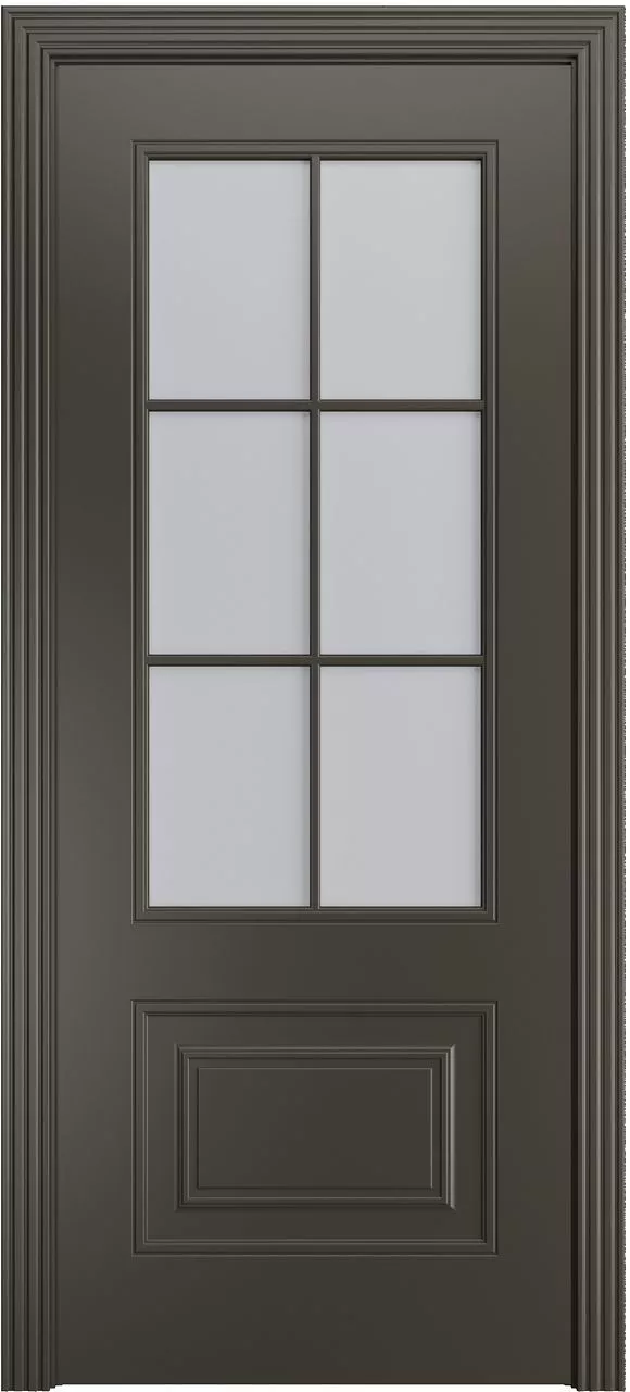 Дверь Версаль-Ф Loft (6) ДО имеет каркасно-щитовую конструкцию с фрезерованной поверхностью полотна и английской решеткой на 6 квадратов. Модель остеклена светлым или темным сатинатом на выбор и покрыта эмалью.