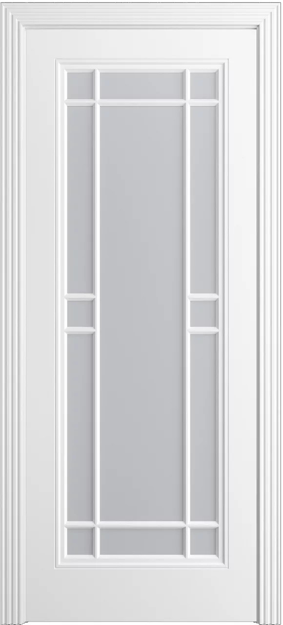 Дверь Бьянка-1.1 ДО имеет каркасно-щитовую конструкцию с фрезерованной поверхностью полотна, имитирующей филенки. Модель остеклена на выбор светлым сатинатом, фигурным литьем, гравированным или зеркальным стеклом и покрыта эмалью.