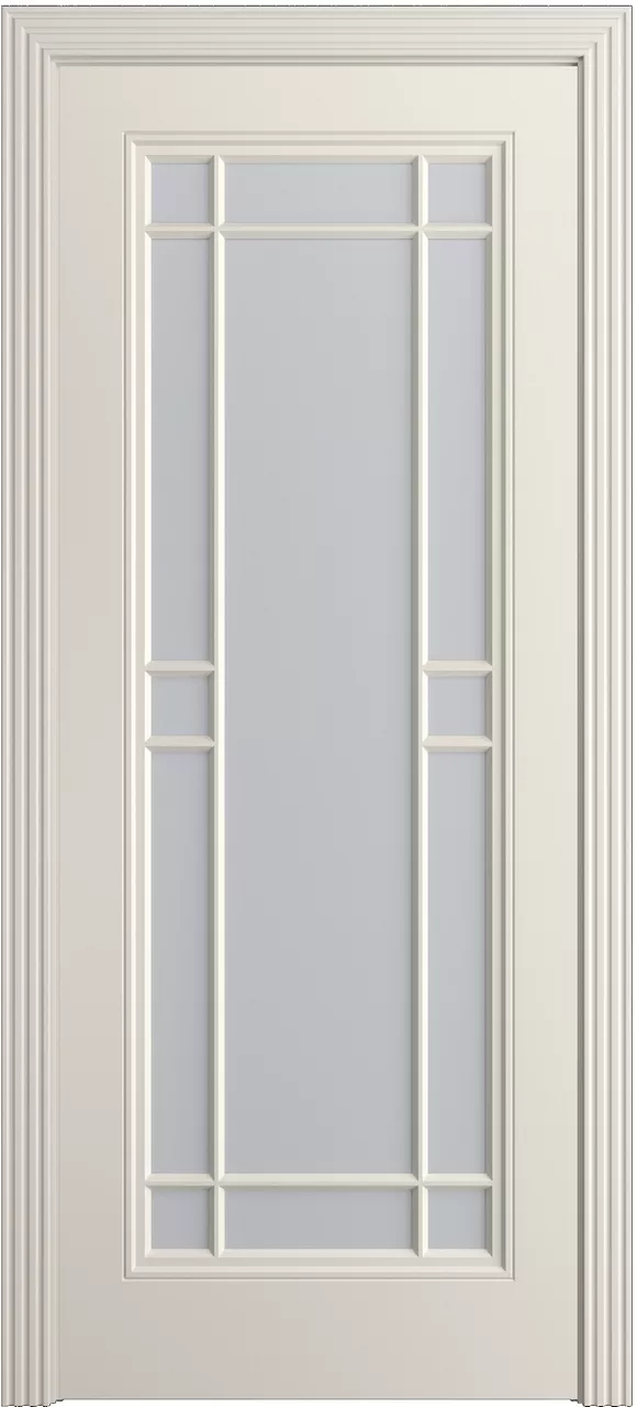 Дверь Бьянка-1.1 ДО имеет каркасно-щитовую конструкцию с фрезерованной поверхностью полотна, имитирующей филенки. Модель остеклена на выбор светлым сатинатом, фигурным литьем, гравированным или зеркальным стеклом и покрыта эмалью.