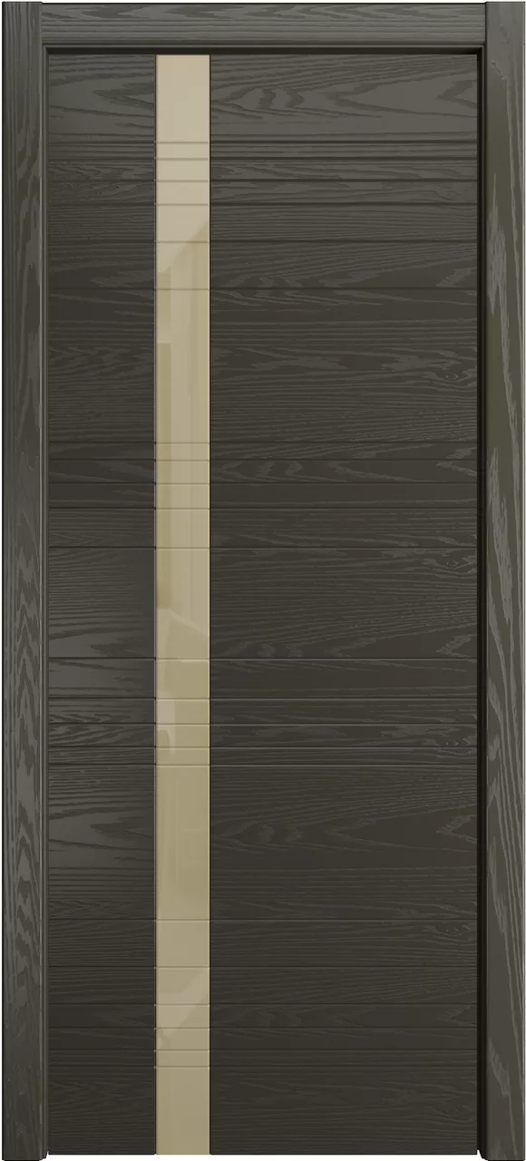 Дверь ID-H ДО имеет каркасно-щитовую конструкцию с фрезерованной поверхностью полотна. Модель остеклена лакобелем и покрыта натуральным шпоном ясеня или дуба на выбор.