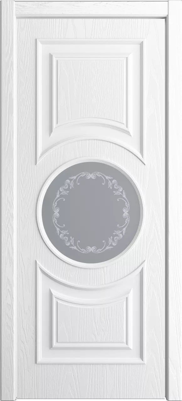 Дверь Адриана ДО имеет сборную конструкцию с фрезерованными филенками и ступенчатым багетом. Модель остеклена стеклом с гравировкой, фотопечатью, наливным витражом или пескоструйным рисунком и покрыта натуральным шпоном ясеня.