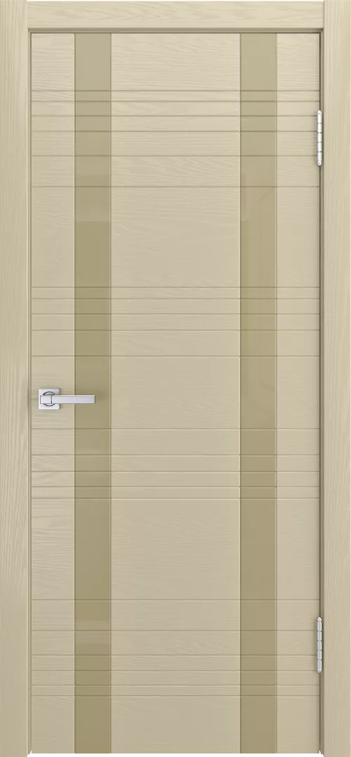 Дверь ID-D ДО имеет каркасно-щитовую конструкцию с фрезерованной поверхностью полотна. Модель остеклена лакобелем и покрыта натуральным шпоном ясеня или дуба на выбор.