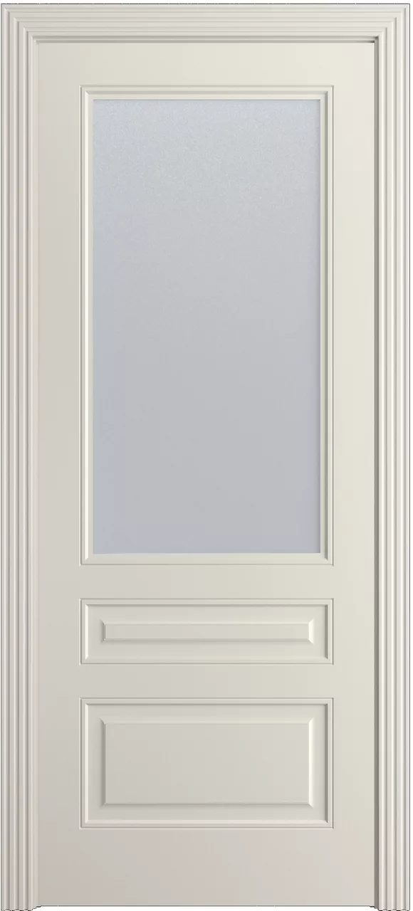 Дверь Бьянка-3 ДО имеет каркасно-щитовую конструкцию с фрезерованной поверхностью полотна, имитирующей филенки. Модель остеклена на выбор светлым сатинатом, фигурным литьем, гравированным или зеркальным стеклом и покрыта эмалью.