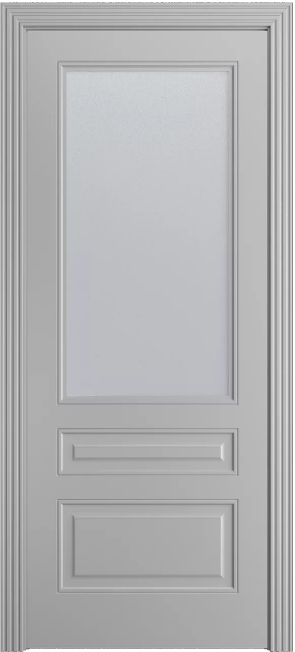 Дверь Бьянка-3 ДО имеет каркасно-щитовую конструкцию с фрезерованной поверхностью полотна, имитирующей филенки. Модель остеклена на выбор светлым сатинатом, фигурным литьем, гравированным или зеркальным стеклом и покрыта эмалью.