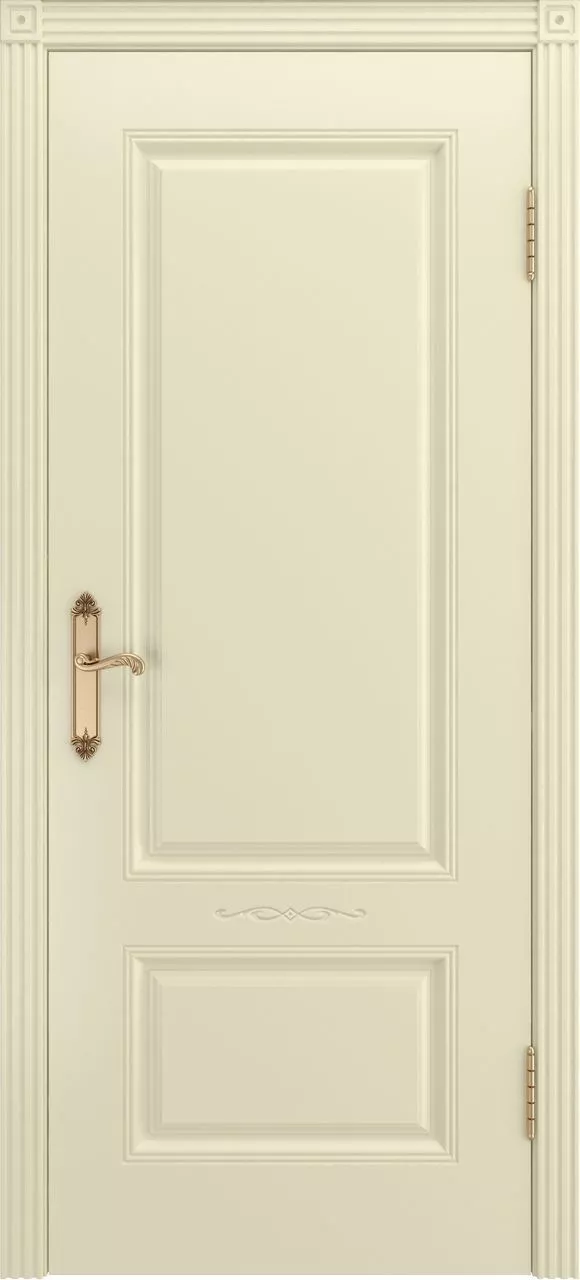 Дверь Аккорд В1 ДГ имеет каркасно-щитовую конструкцию с фрезерованной поверхностью полотна, имитирующей филенки. Фигурная фрезеровка на «филенках» отсутствует, есть вензель между «филенками». Модель покрыта эмалью.