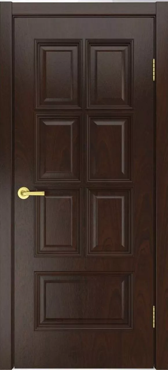 Дверь Палермо-1 ДГ имеет сборную конструкцию с фрезерованными филенками и ступенчатым багетом. Модель покрыта натуральным шпоном ясеня, дуба или американского ореха на выбор.