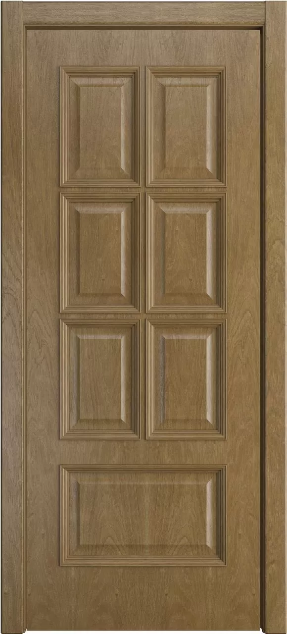 Дверь Палермо-1 ДГ имеет сборную конструкцию с фрезерованными филенками и ступенчатым багетом. Модель покрыта натуральным шпоном ясеня, дуба или американского ореха на выбор.