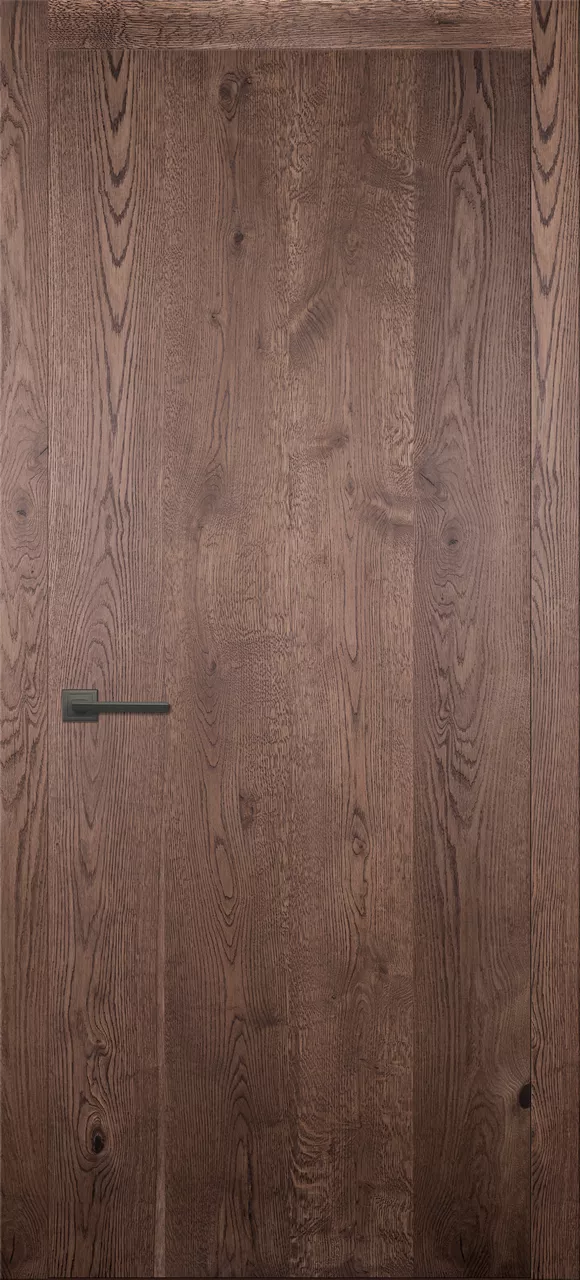 Дверь Легно-1 ДГ имеет каркасно-щитовую конструкцию с гладкой поверхностью полотна. Модель изготовлена по технологии DSW из внутренней рамки с цельным заполнением массивом и оклеена дубовыми щитами из нерошенной рустикальной ламели дуба. Покрыта морилкой и водным лаком.