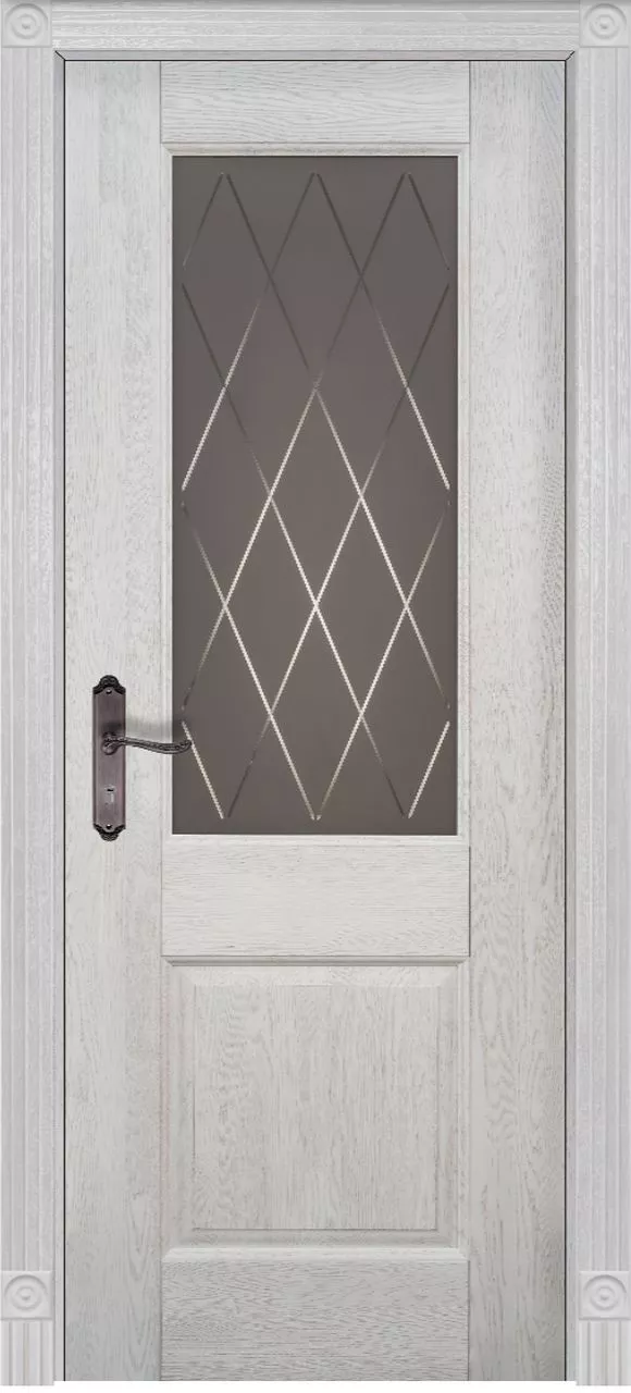 Дверь Классик №2 ДО имеет сборную царговую конструкцию с фрезерованной поверхностью полотна. Остекление на выбор закаленным стеклом «кристалайз» или светлым сатинатом с гравировкой. Модель изготовлена из массива дуба, на выбор покрыта тонировкой (бейц) или эмалью.