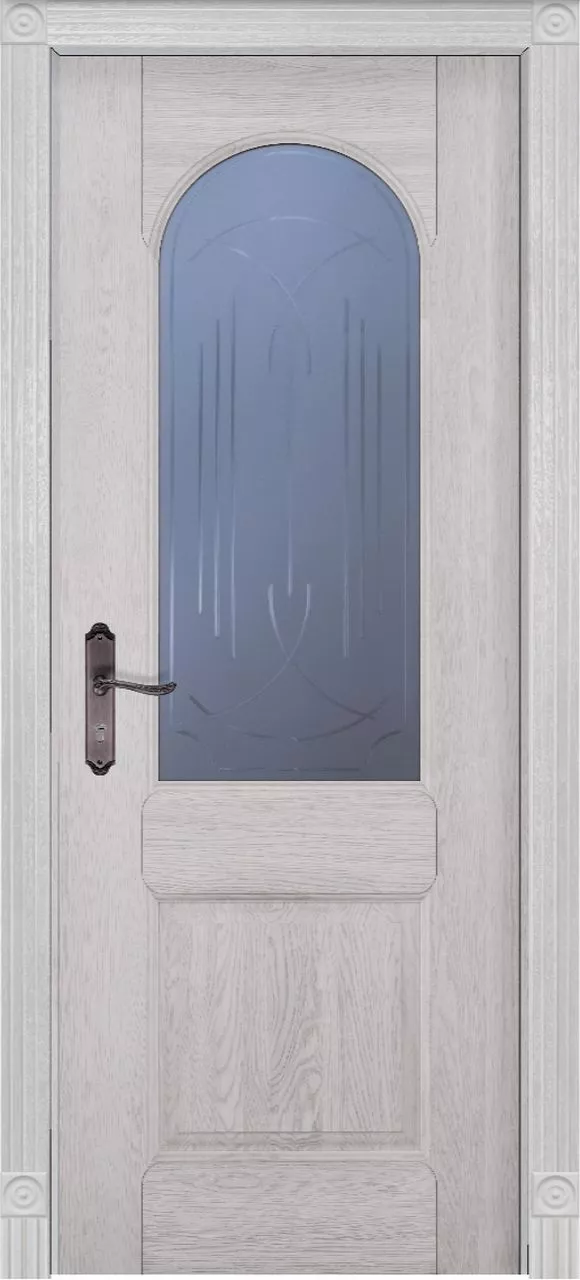 Дверь Чезана ДО имеет сборную царговую конструкцию с фрезерованной поверхностью полотна. Остекление светлым сатинатом с гравировкой. Модель изготовлена из массива дуба, на выбор покрыта тонировкой (бейц) или эмалью.