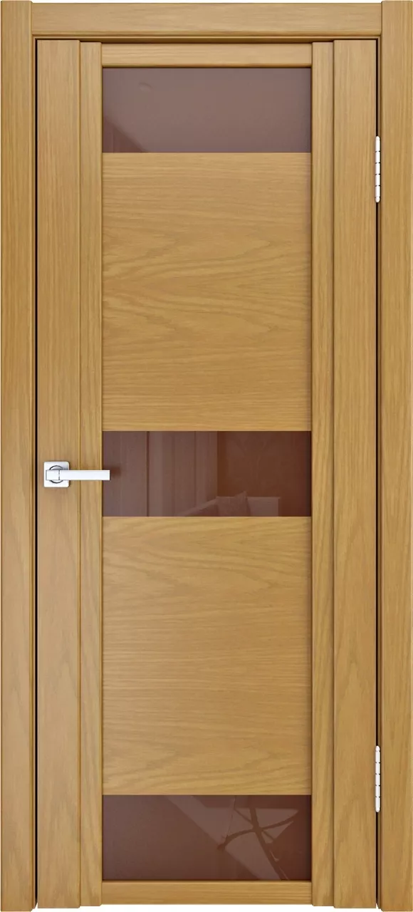 Дверь QDO R ДО имеет царговую конструкцию. Модель остеклена триплексом и покрыта натуральным шпоном ясеня, дуба или американского ореха на выбор.