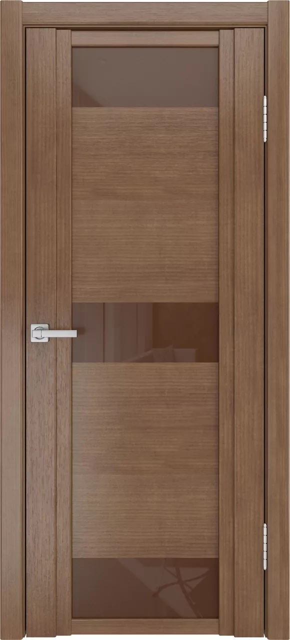 Дверь QDO R ДО имеет царговую конструкцию. Модель остеклена триплексом и покрыта натуральным шпоном ясеня, дуба или американского ореха на выбор.