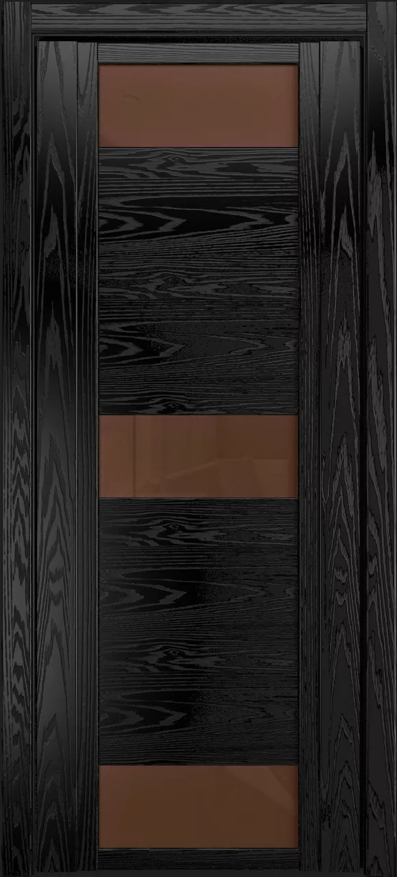 Дверь QDO R ДО имеет царговую конструкцию. Модель остеклена триплексом и покрыта натуральным шпоном ясеня, дуба или американского ореха на выбор.
