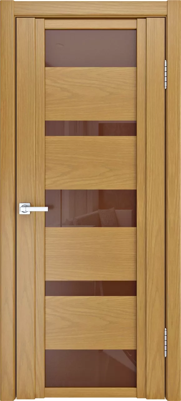 Дверь QDO M ДО имеет царговую конструкцию. Модель остеклена триплексом и покрыта натуральным шпоном ясеня, дуба или американского ореха на выбор.