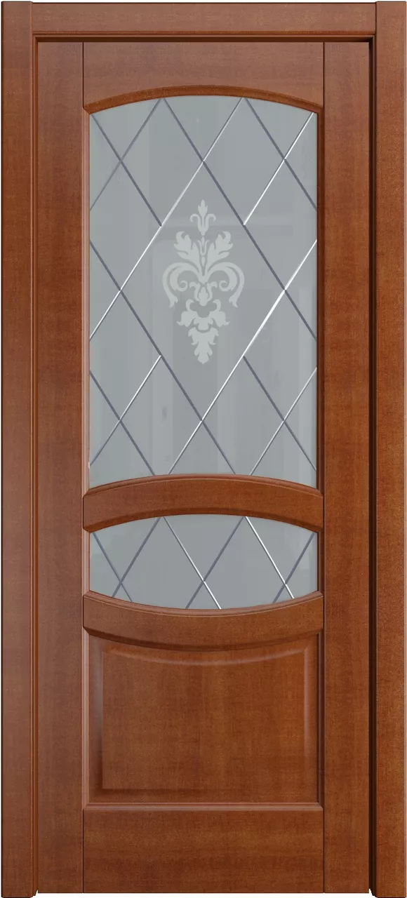 Дверь София ДО имеет сборную царговую конструкцию с фрезерованной поверхностью полотна. Остекление мателюксом в цвете Графит. Модель изготовлена из массива ольхи, на выбор покрыта тонировкой (бейц) или эмалью.