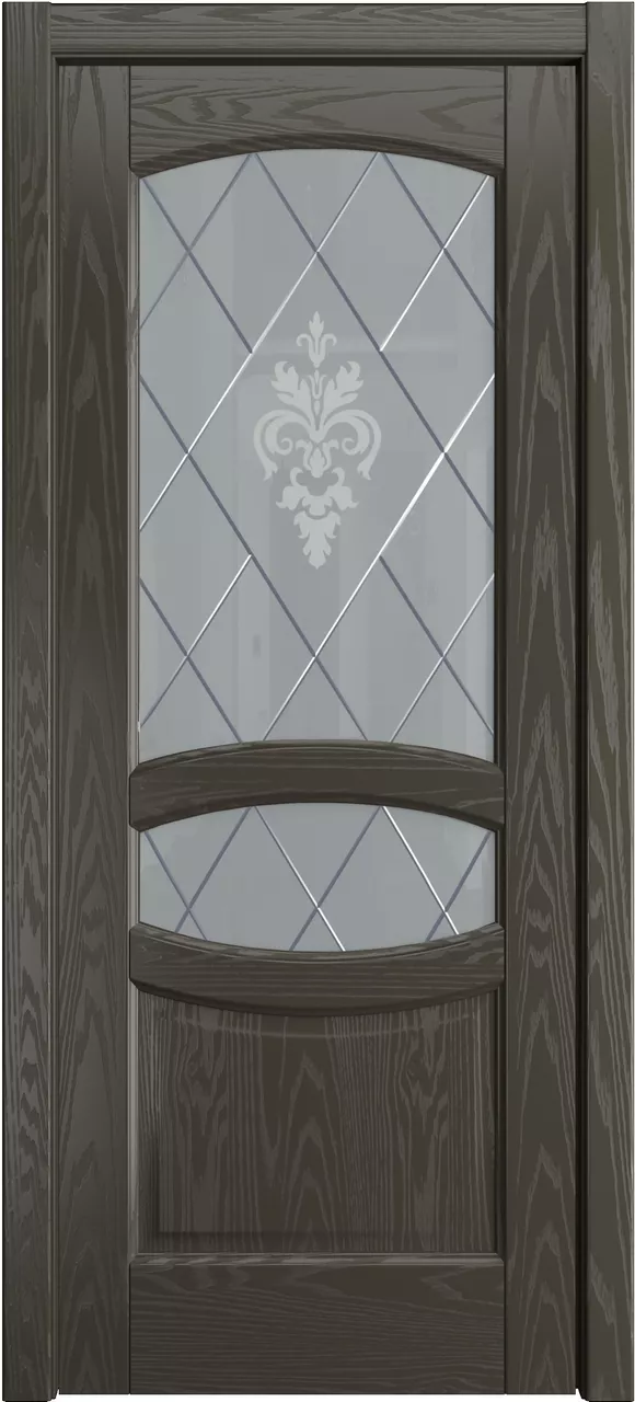 Дверь София ДО имеет сборную царговую конструкцию с фрезерованной поверхностью полотна. Остекление мателюксом в цвете Графит. Модель изготовлена из массива ольхи, на выбор покрыта тонировкой (бейц) или эмалью.