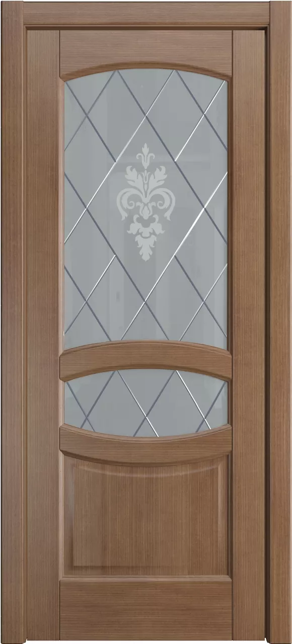 Дверь София ДО имеет сборную царговую конструкцию с фрезерованной поверхностью полотна. Остекление мателюксом в цвете Графит. Модель изготовлена из массива ольхи, на выбор покрыта тонировкой (бейц) или эмалью.