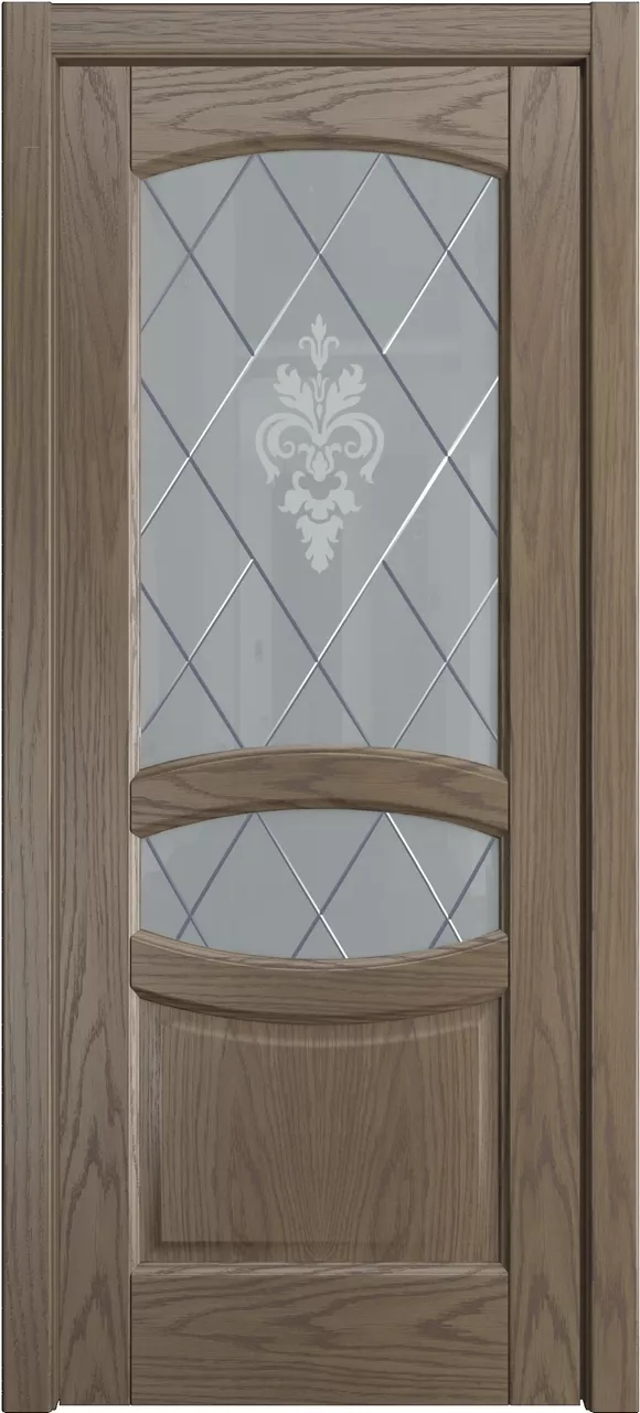 Дверь София ДО имеет сборную царговую конструкцию с фрезерованной поверхностью полотна. Остекление мателюксом в цвете Графит. Модель изготовлена из массива ольхи, на выбор покрыта тонировкой (бейц) или эмалью.